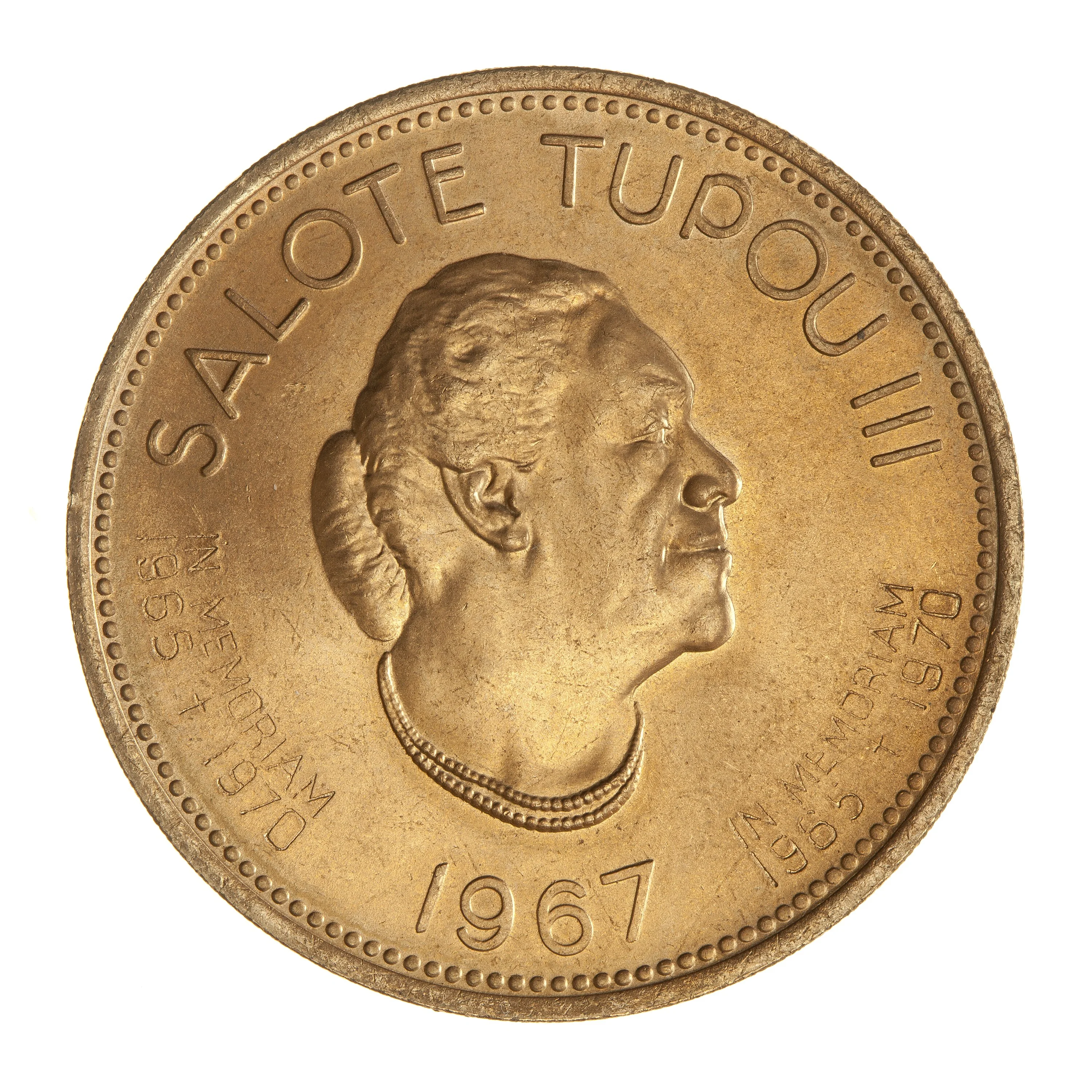 Queen Salote III facing right, date beneath.