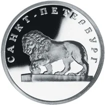 A lion on a stone ball, with the inscription "САНКТ-ПЕТЕРБУРГ" along the top rim.