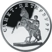A nude athlete controlling a rearing horse with a bridle. The rim is inscribed "САНКТ-ПЕТЕРБУРГ" (SAINT PETERSBURG).