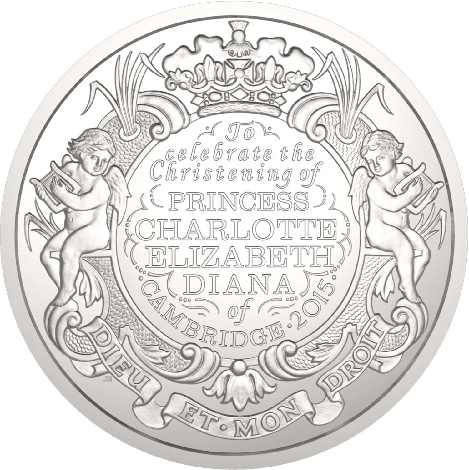 Charlotte’s name in a royal cartouche, with cherubs and details from the historic Lily Font.