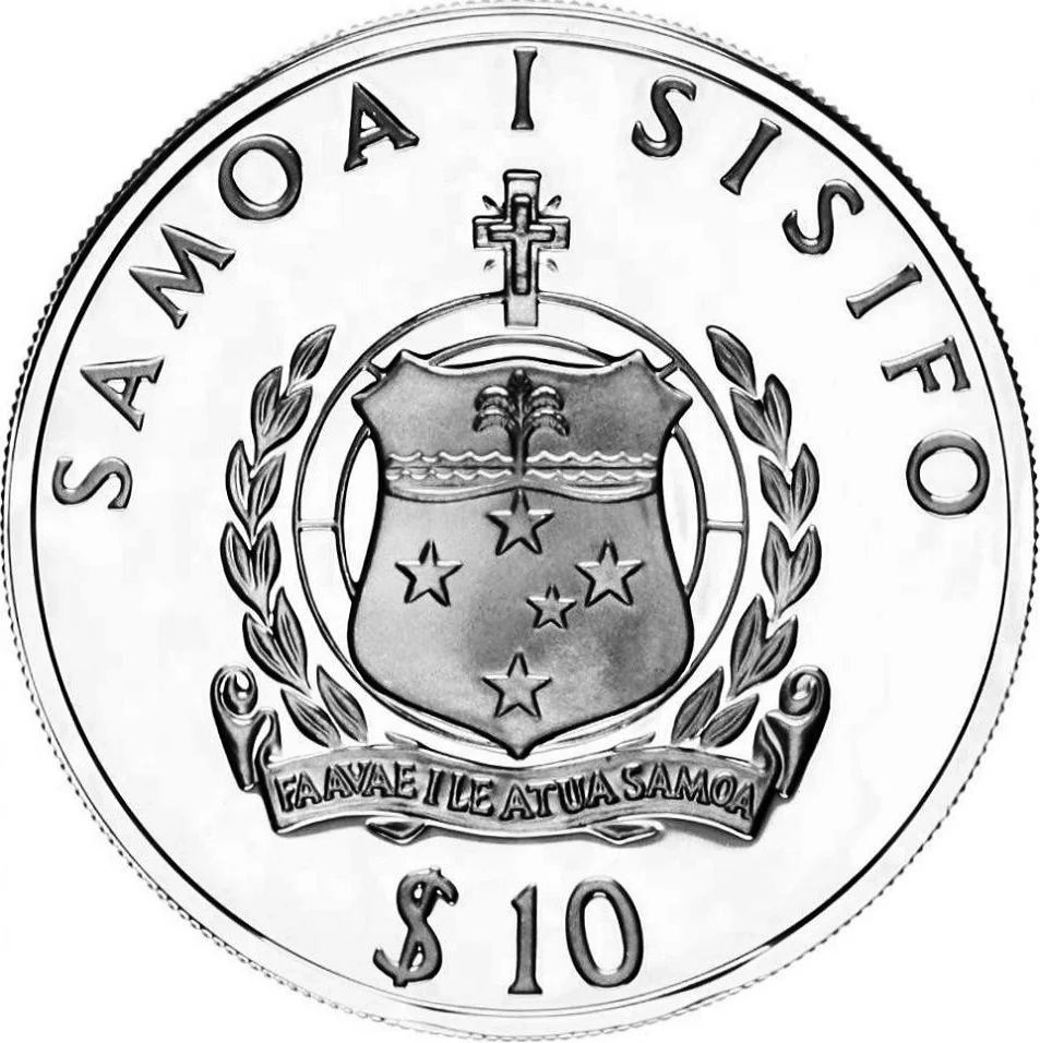 Javelin thrower before the Apia Latter-day Saints temple (1981).