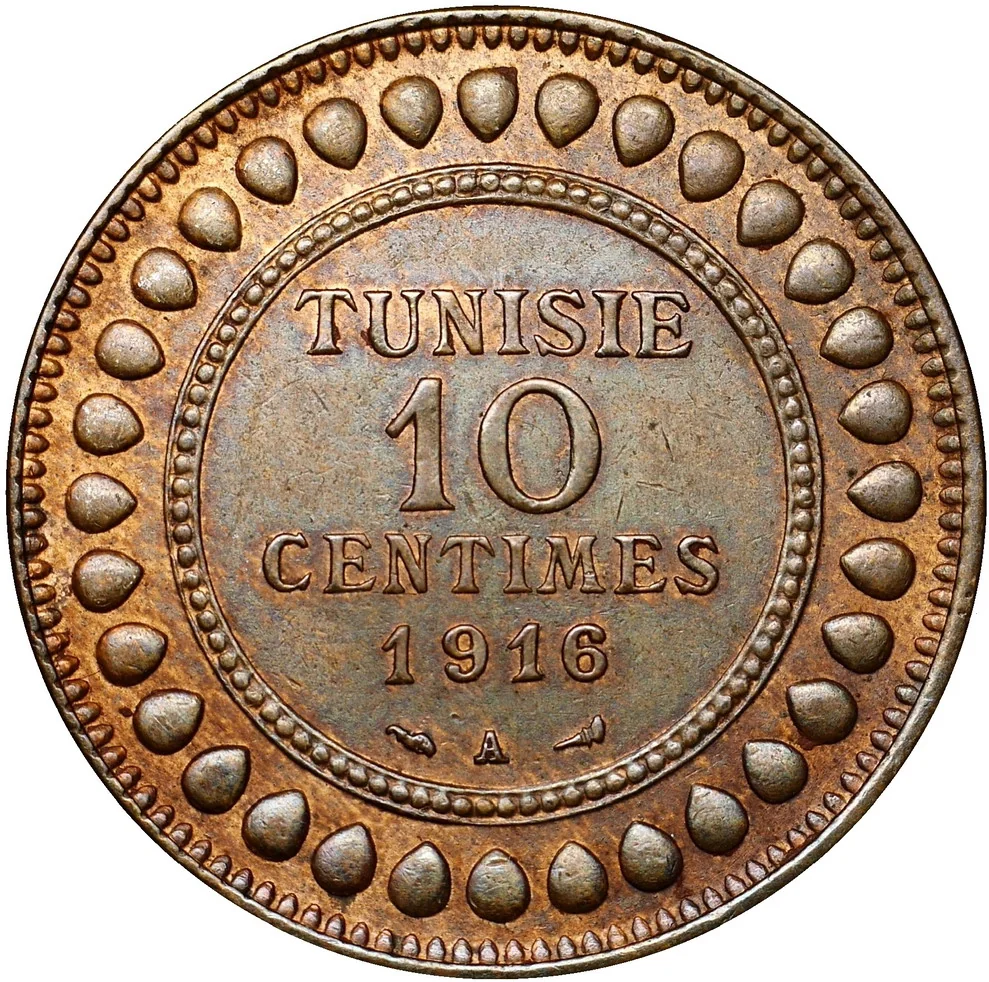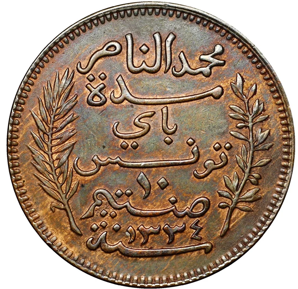Mohammed al-Nasir, Bey of Tunis, 10 centimes, 1334 AH.