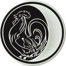 A cock and a half-moon flank the solid rim of the ring.