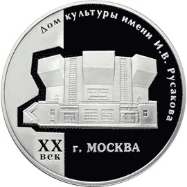 Club building image. Date left: «ХХ век». Right: «г. МОСКВА». Top rim: «ДОМ КУЛЬТУРЫ ИМЕНИ И.В. РУСАКОВА».