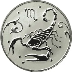 A matted surface featuring a scorpion, stars, stylized plants, and the Scorpio zodiac symbol.