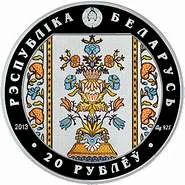 Description: Obverse: Relief State Coat of Arms. Central field: Pad-printed fragment of a Slutsk manufactory molded belt (1780–1807), from the National Museum's collection. Peripheral inscriptions: "РЭСПУБЛІКА БЕЛАРУСЬ", year of issue, alloy standard, and "20 РУБЛЁЎ".