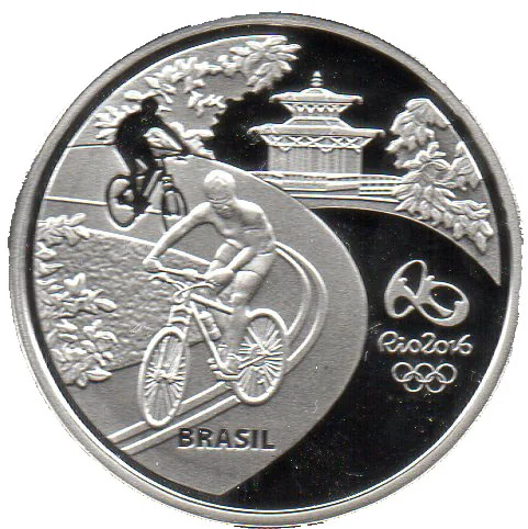 Cycling in Tijuca Forest with the Chinese Pavilion, the Rio 2016 logo, and "Brasil."