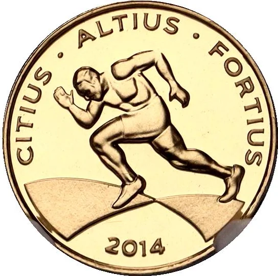 A 100m athlete embodies "Citius, Altius, Fortius" in the 2014 era.