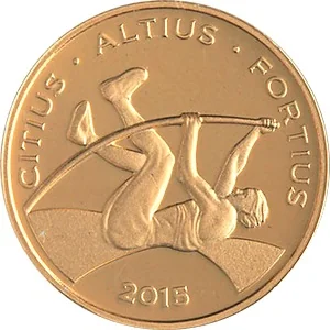 A 2015 pole vault athlete with "Citius, Altius, Fortius."