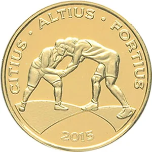 Olympic wrestlers with "Citius, Altius, Fortius" and the year 2015.