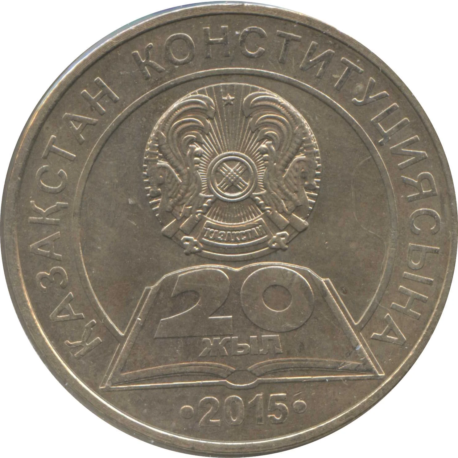 Description: The obverse features Kazakhstan's national emblem, the abbreviation "ҚҰБ" to its right, and the denomination "50 ТЕҢГЕ" above national ornamentation. "ҚАЗАҚСТАН ҰЛТТЫҚ БАНКІ" is inscribed along the bottom.