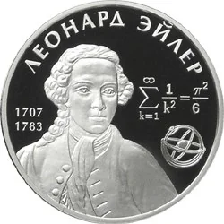 Central portrait of Euler. Left: dates "1707" and "1783". Right: a formula. Below: a celestial sphere. Top rim inscription: "ЛЕОНАРД ЭЙЛЕР".