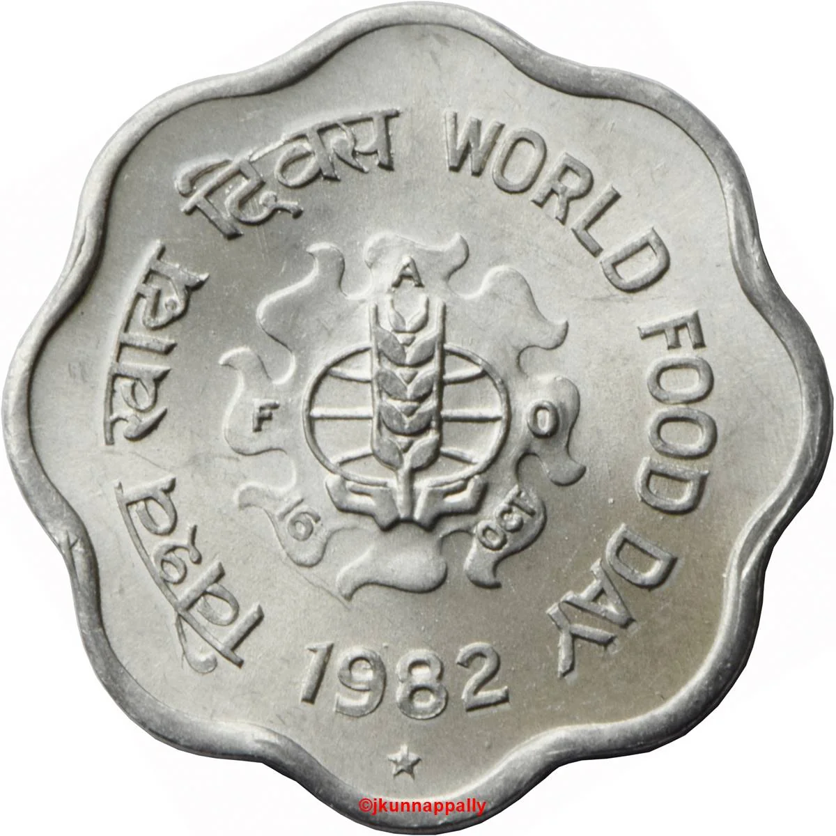 Grain sprig in stylized sun. Mintmarks: ♦ (Mumbai), none (Calcutta), * (Hyderabad).