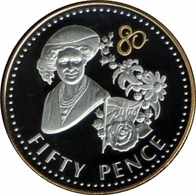 Queen Elizabeth with floral wreath and flag. Gilded 80.