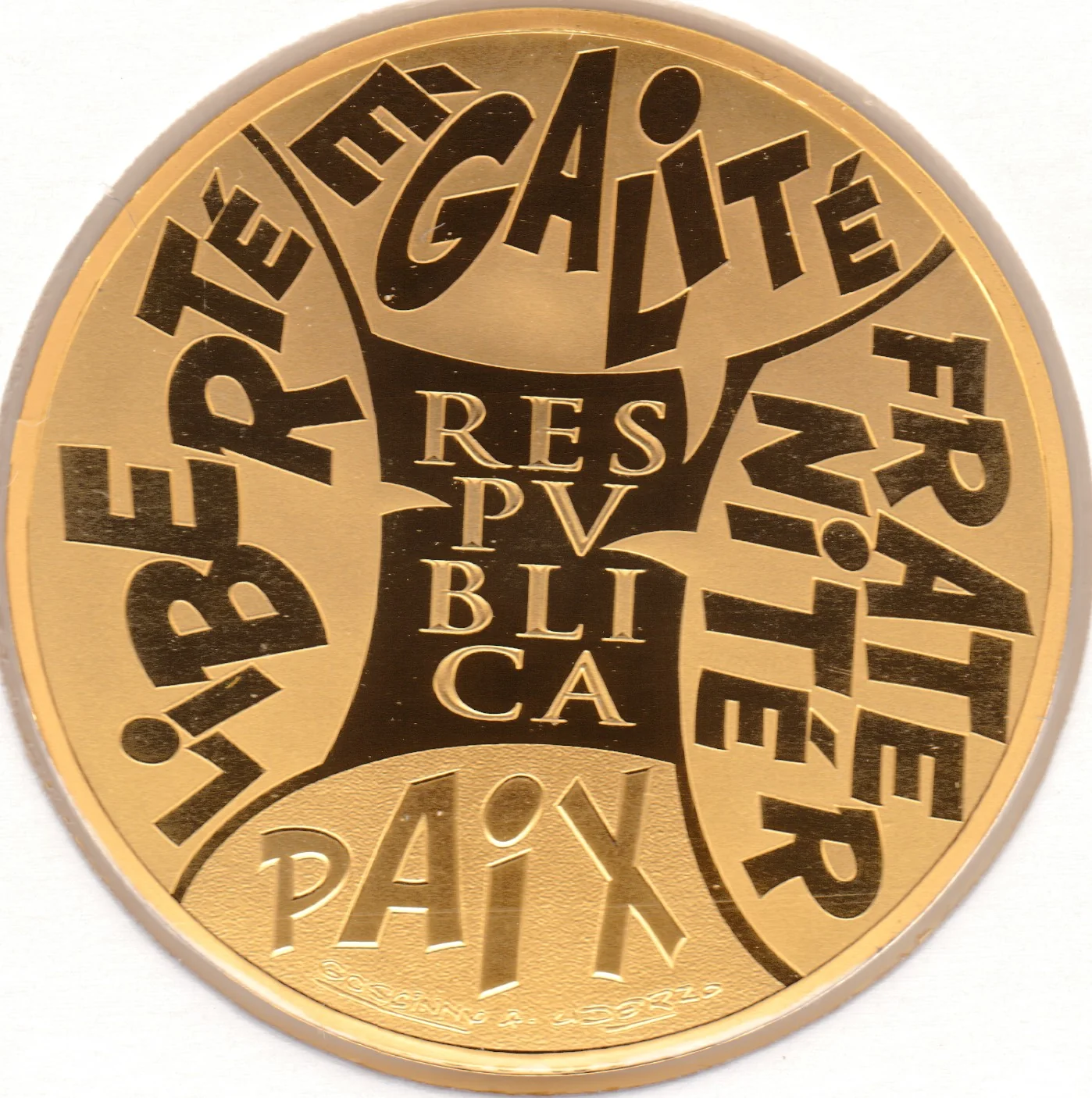 "RÉPUBLIQUE" from Asterix, encircled by "LIBERTÉ ÉGALITÉ FRATERNITÉ" and "PAIX".