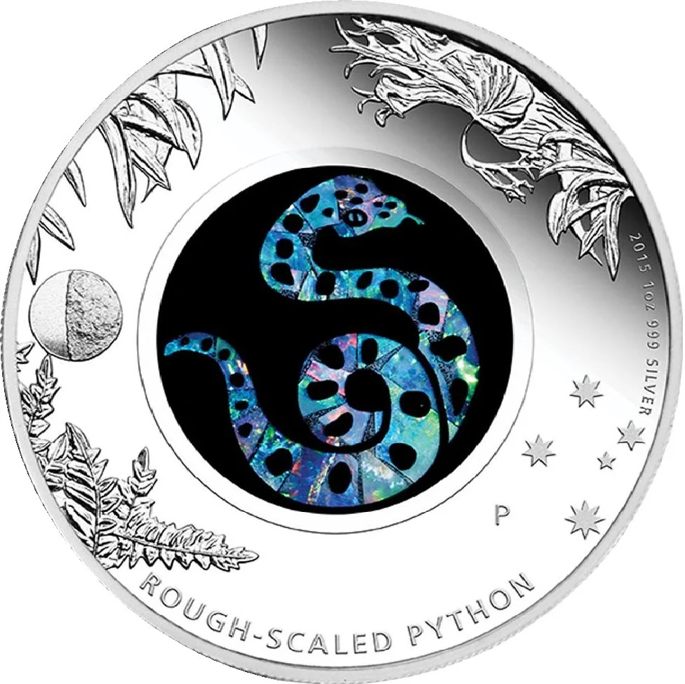 Opal python encircled by the Moon, Southern Cross, and vegetation.