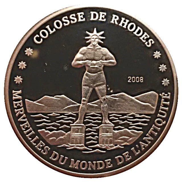 A massive bronze statue of the sun god Helios that stood at the harbor of Rhodes.