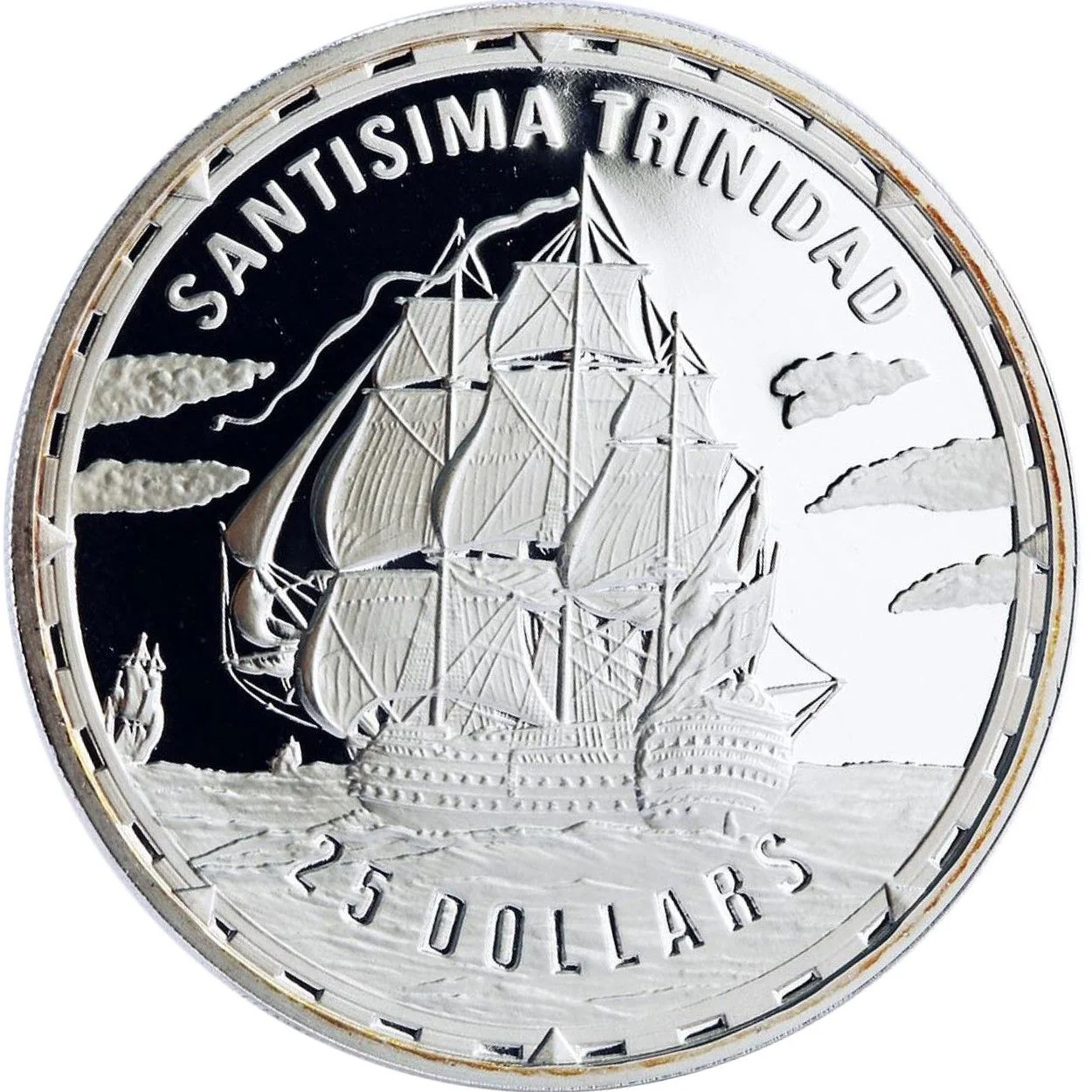 Santisima Trinidad sailing away left.