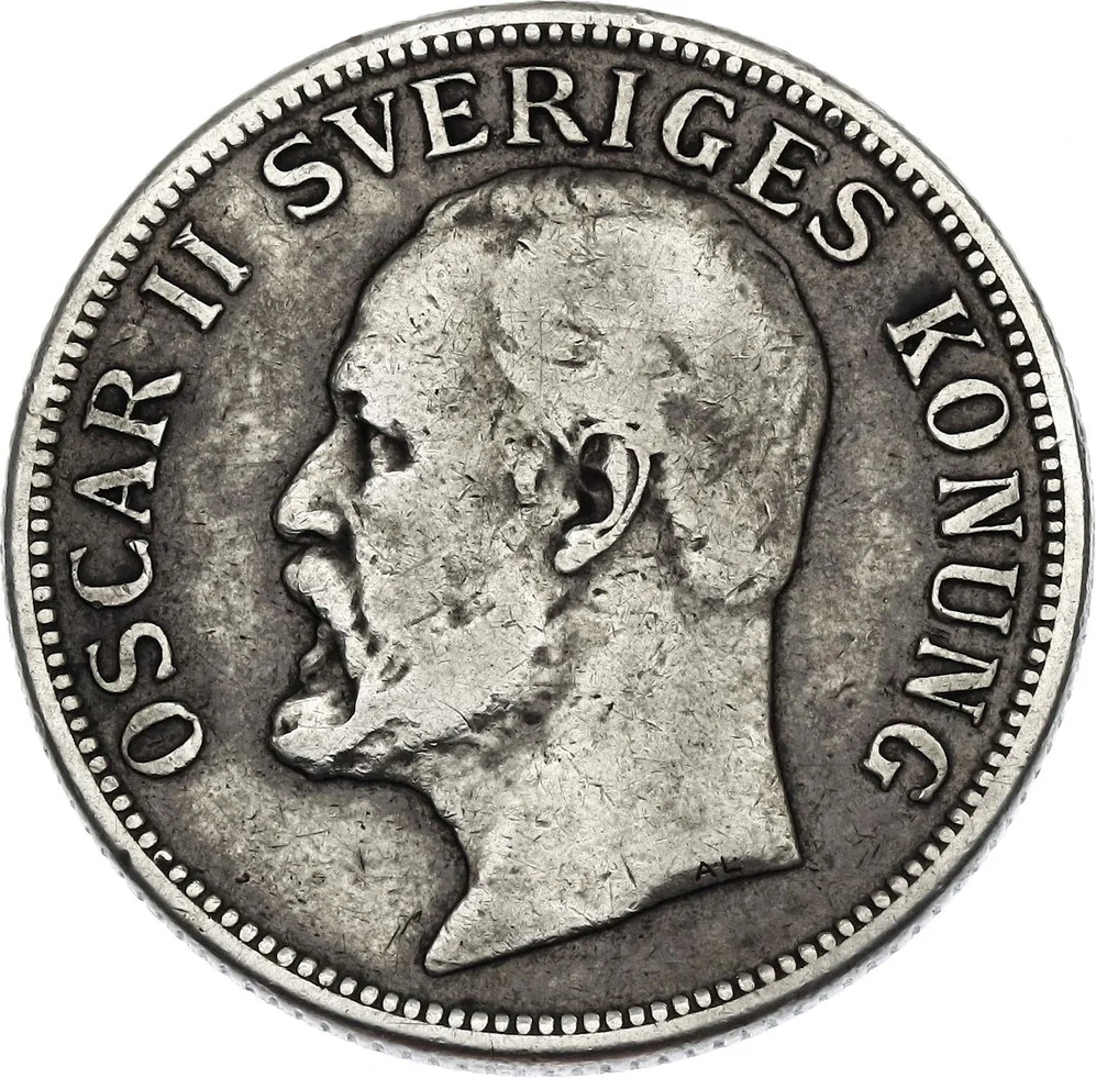 King Oscar II facing left. Engraver initials below neck. Legend around rim.