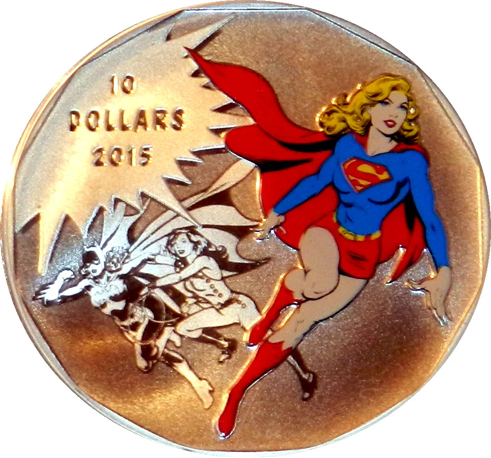 A colored, engraved illustration of Supergirl teaming up with Batgirl and Wonder Girl.