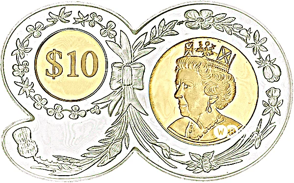 Queen Elizabeth II's bust faces right within the '0', wearing the George IV State Diadem, with the Royal Crown in the '9'; legend and year continue the bouquet design.