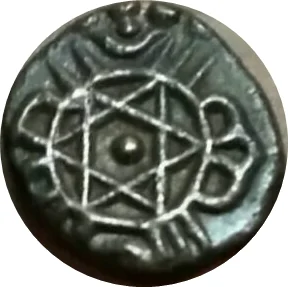 Sudarsana chakra: a six-pointed star encircled by dots.
