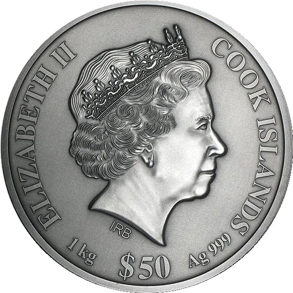 Queen Elizabeth II facing right, with denomination, weight, and fineness below.