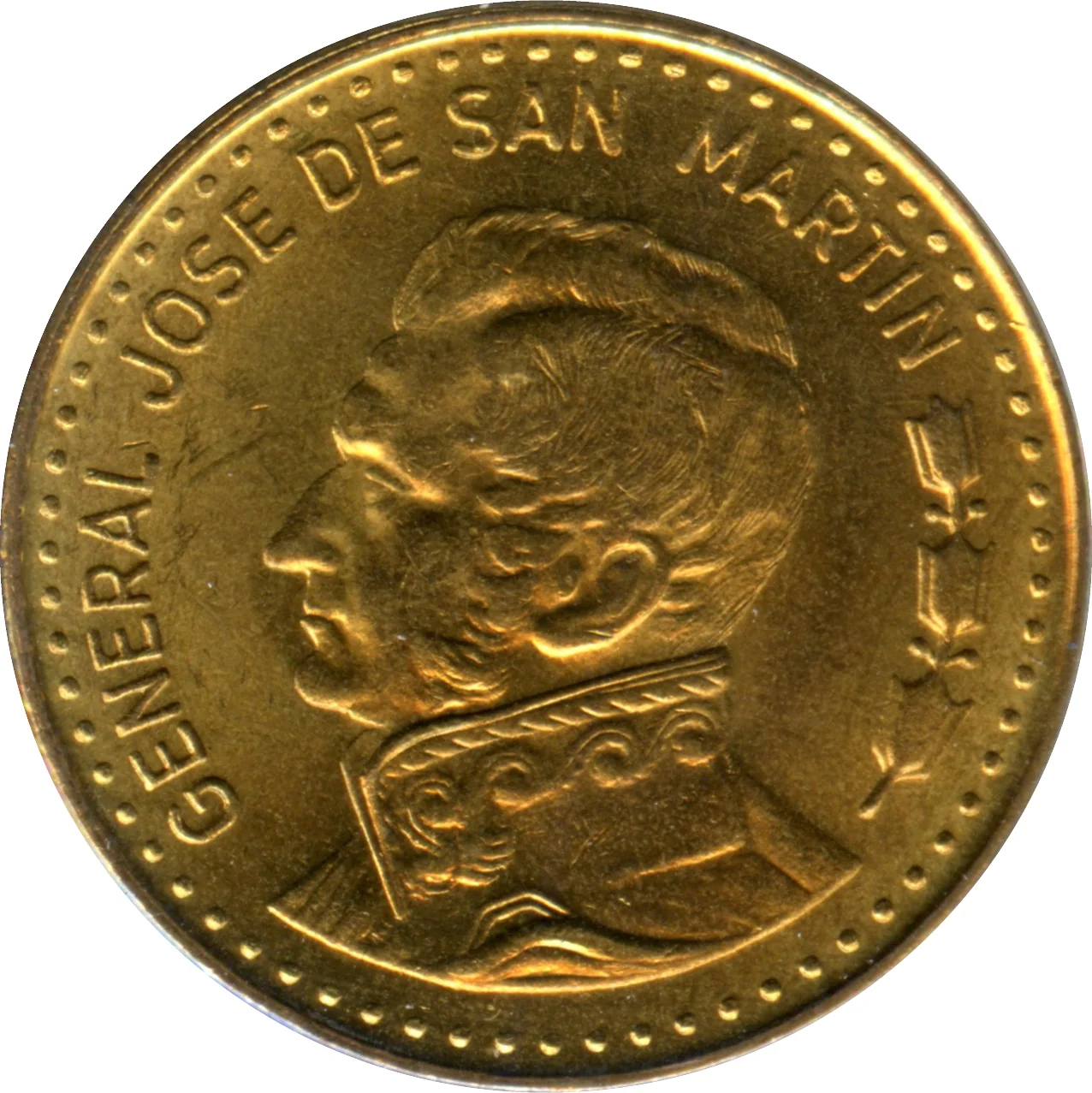 Armored bust of San Martín, left profile.