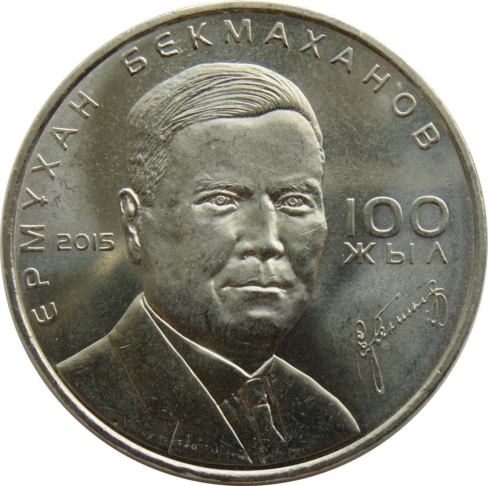 Description: The obverse features the emblem of Kazakhstan within an eight-pointed star, surrounded by the inscription "ҚАЗАҚСТАН ҰЛТТЫҚ БАНКІ". The denomination "50 ТЕҢГЕ" is at the bottom, flanked by national ornament.
