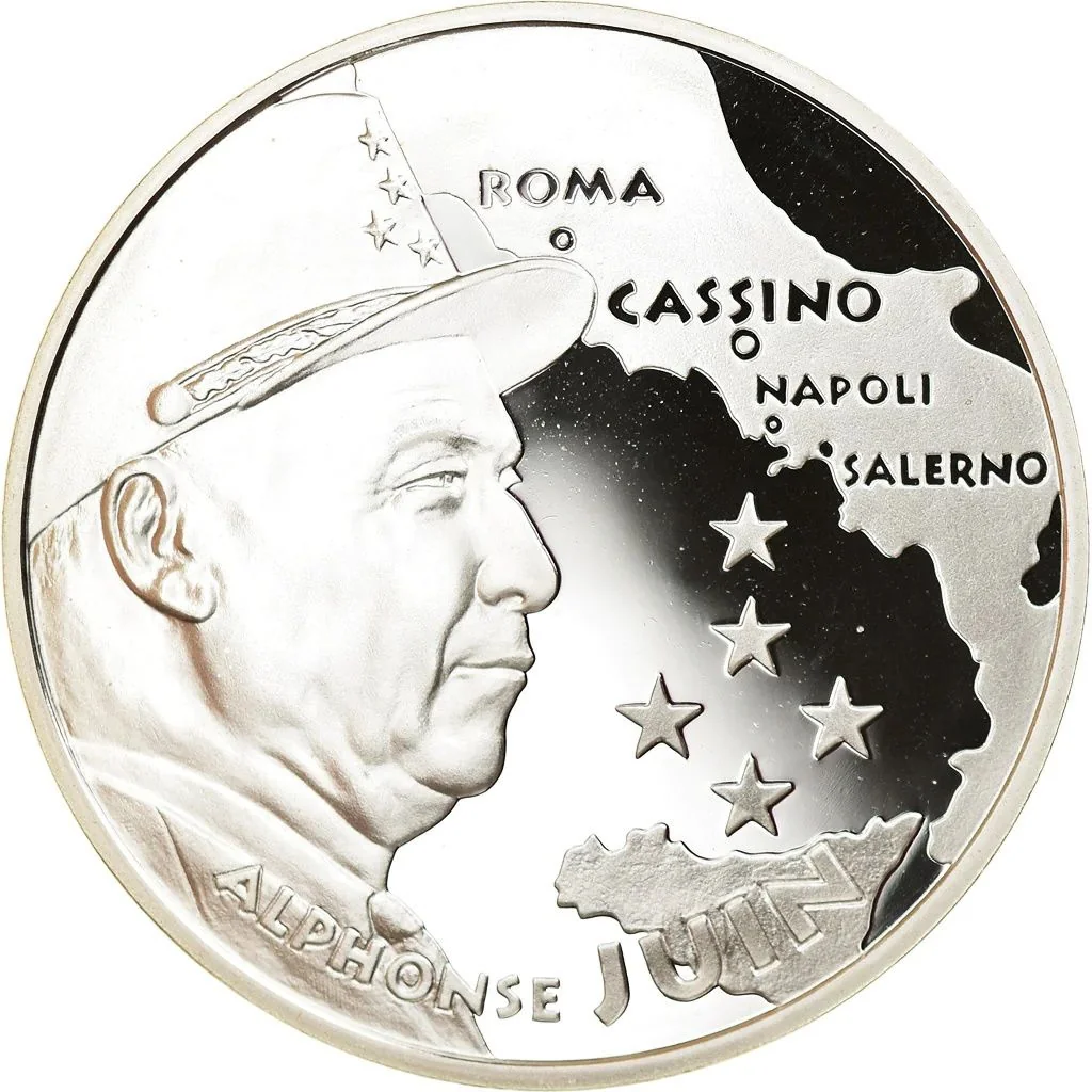 Marshal Juin's bust overlooks a map of Italy and five stars.