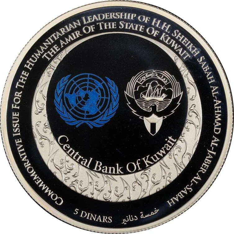 Inscription: COMMEMORATIVE ISSUE FOR THE HUMANITARIAN LEADERSHIP OF H.H. SHEIKH SABAH AL-AHMAD AL-JABER AL-SABAH