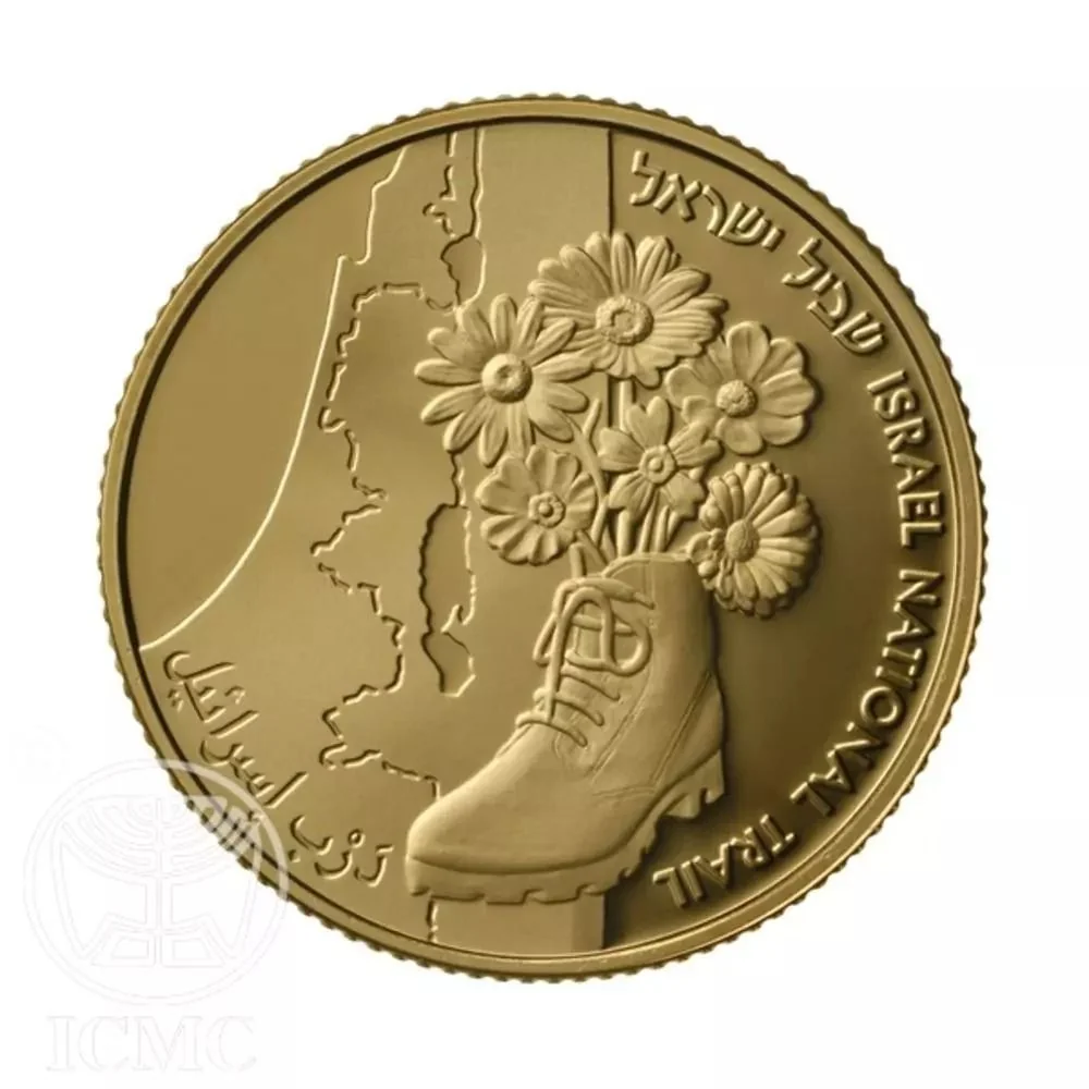 Israel's National Trail map with a walking shoe sprouting wildflowers.