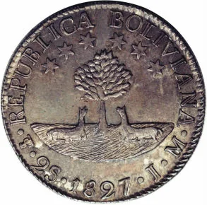 centavos. Crucially, the law mandated the minting of new, high-quality national coinage at the Potosí mint, featuring the republic's coat of arms to symbolize its newfound sovereignty. The initial issues included silver coins of 8, 4, 2, 1, and ½ bolivianos, as well as gold