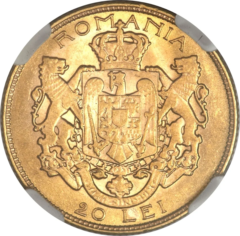 20 LEI, Romania, central coat of arms, encircled by pearls.