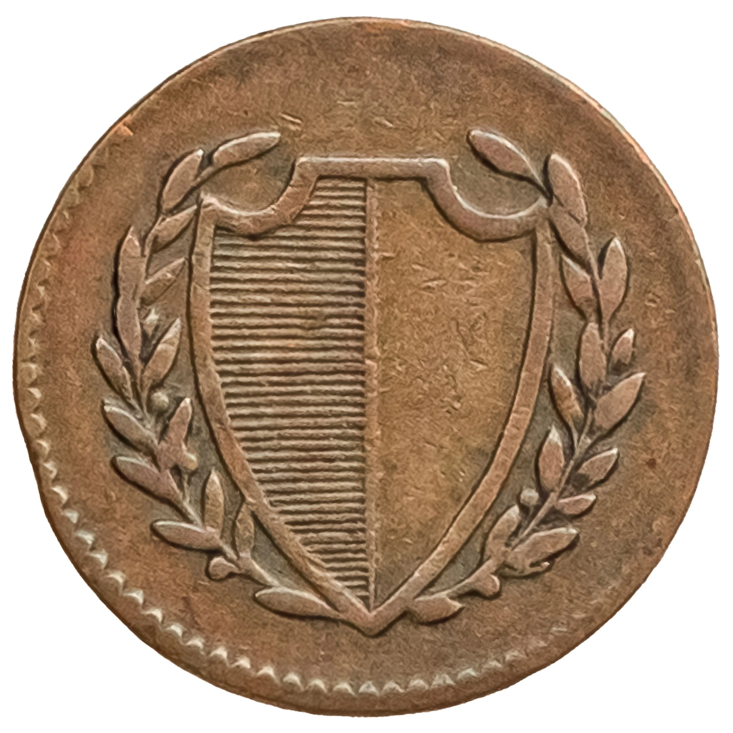 Shield encircled by wreath.