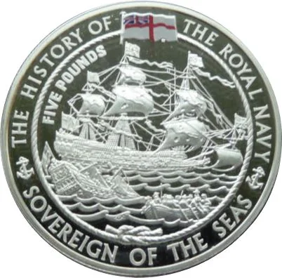 Sailing ship with sinking vessel and rowboat in front, a colored flag overhead.