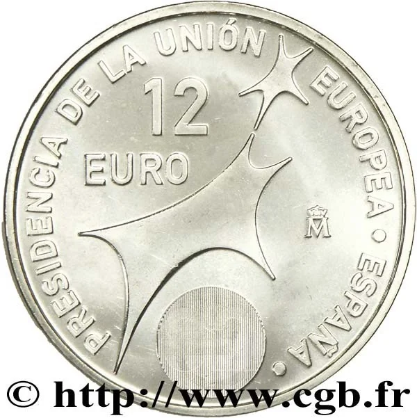 Spanish EU Council Presidency logo. Name above, mintmark right, legend encircling.