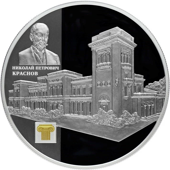 The center features the Livadia Palace in relief. To the left, on a matte segment, is a portrait of N.P. Krasnov with his name inscribed below, above a colored Ionic order capital.
