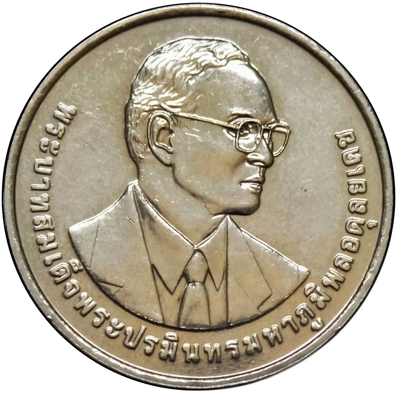 Bust of King Bhumibol Adulyadej facing half right, with inscriptions below.