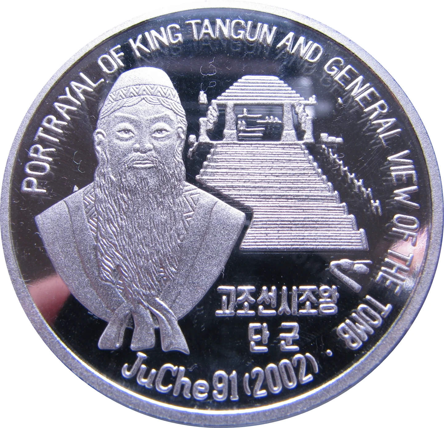 King Tangun bust and tomb. Circular inscription, date below with central dot.