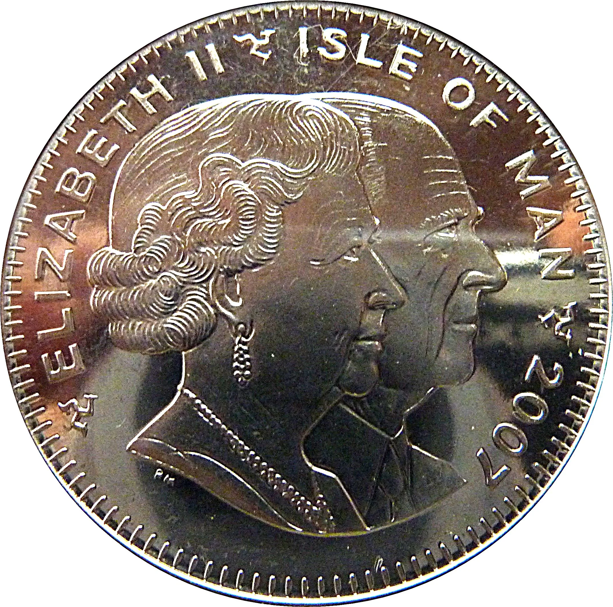 In 2007, the Isle of Man's currency situation was defined by its unique political status as a British Crown Dependency. While not part of the United Kingdom, the Island's long-standing monetary policy was to align its currency with that of its largest trading partner. Consequently, the official currency was the Manx pound, which was issued by the Isle of Man Government and maintained a fixed parity at a 1:1 exchange rate with the pound sterling. Sterling notes and coins also circulated freely and were accepted as legal tender alongside distinct Manx-issued notes and coins, which featured local symbols and imagery.