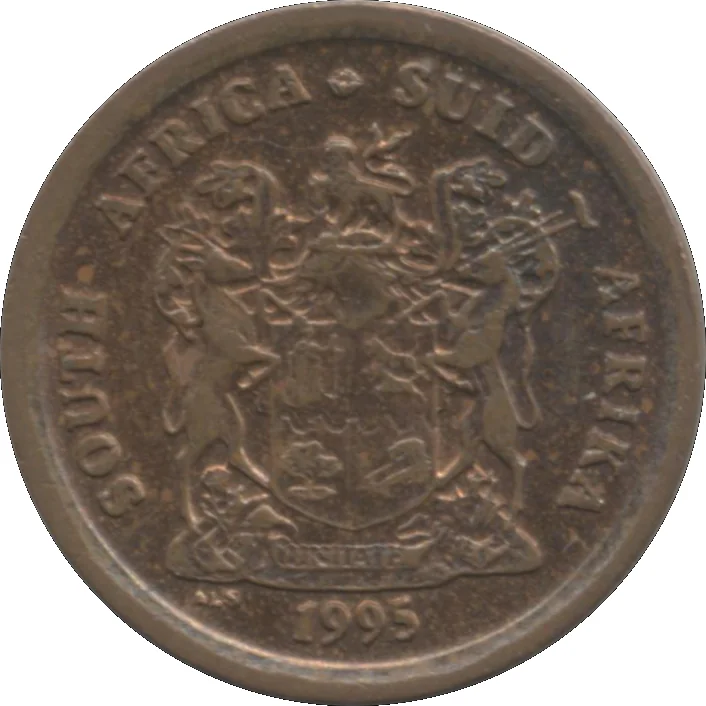 South Africa's coat of arms with the motto "Ex Unitate Vires" (Power Through Unity). Country name in English and Afrikaans.