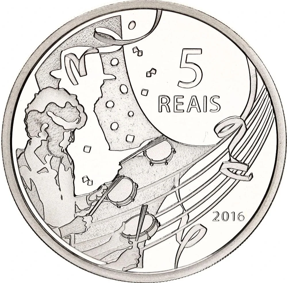 The reverse depicts a samba musician, with the face value and year (2016) completing the design.
