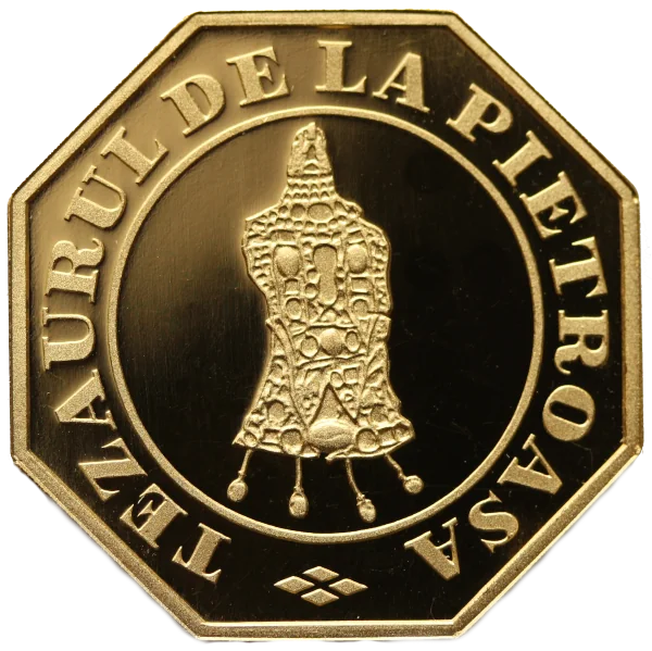 A gold clip inscribed "TEZAURUL DE LA PIETROASA".