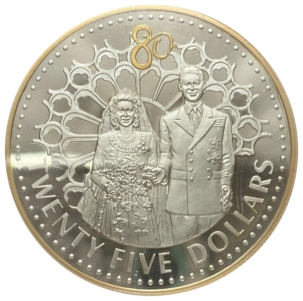 Queen Elizabeth II and Prince Philip in a weeding portrait, a window and gilded '80s frame behind them.