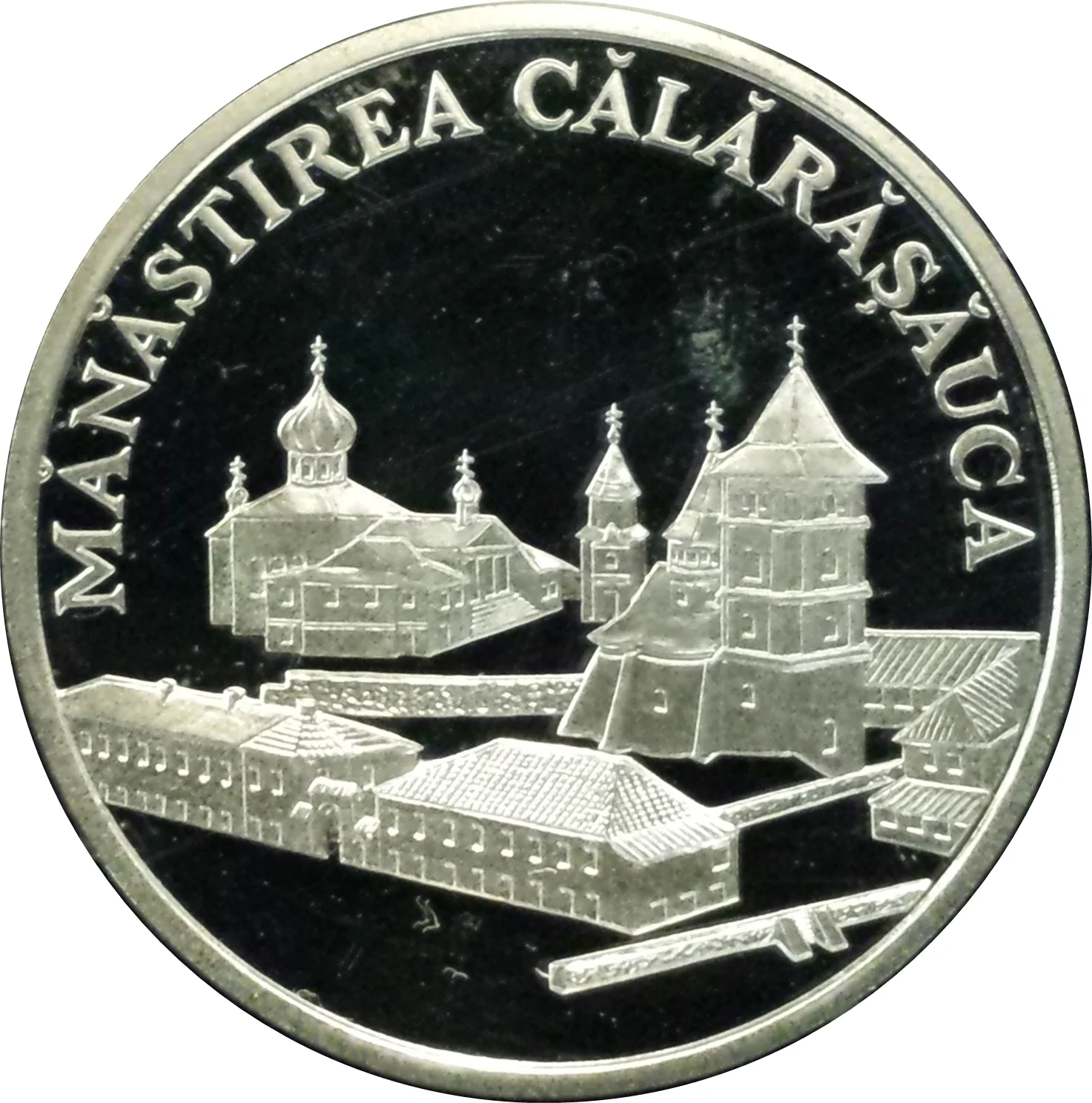 - Around the upper edge, the inscription "MĂNĂSTIREA CĂLĂRĂŞĂUCA" is engraved in block letters.