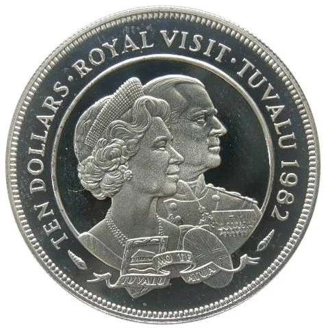 TEN DOLLARS · ROYAL VISIT · TUVALU 1982