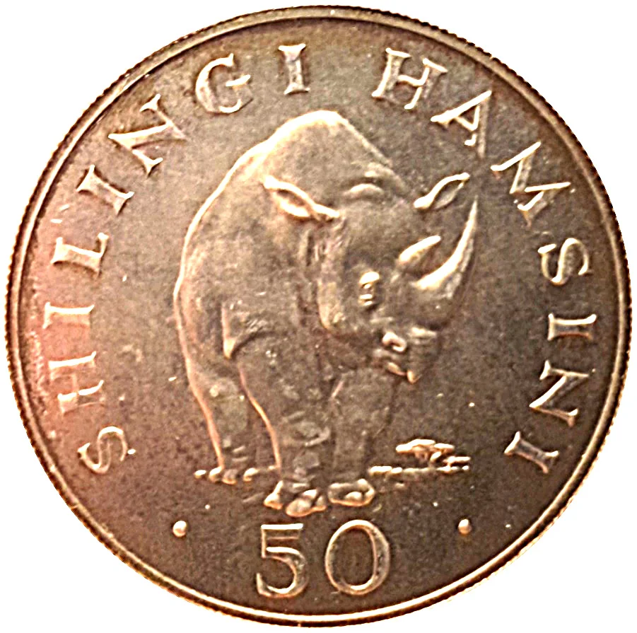 Black rhinoceros at center, legend encircling, denomination beneath.