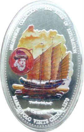 Marco Polo multicolor portrait with ship.