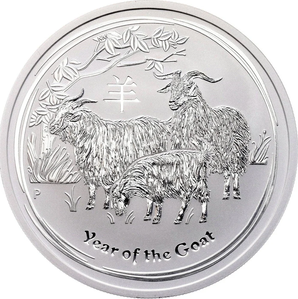 Three goats in a stylized Chinese landscape, with the character for "goat" above.